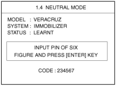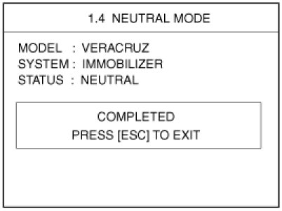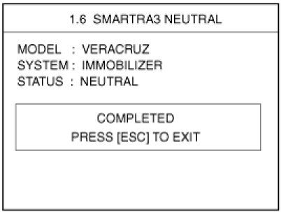 This function is for neutralizing the PCM(ECM) and Key. Ex) when lost key, Neutralize the PCM(ECM) then teach keys.(Refer to the Things to do when Key & PIN Code the PCM(ECM) can be set to the "neutral" status by a scanner.If wrong vehicle specific data have been sent to SMATRA three times continuously or intermittently, the SMATRA will reject the request to enter neutral mode for one hour. Disconnecting the battery or other manipulation cannot reduce this time. After connecting the battery the timer starts again for one hour.