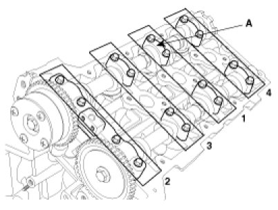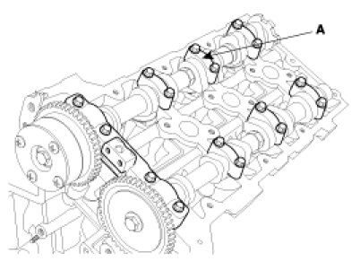 5. Remove the camshaft bearing cap(A).