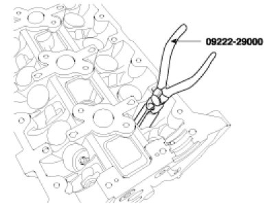 (3) Using the SST(09222 - 3K000, 09222-3C300), compress the spring and install the retainer locks. After installing the valves, ensure that the retainer locks are correctly in place before releasing the valve spring compressor.