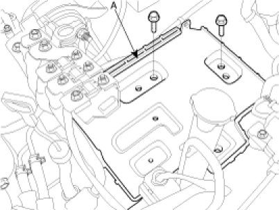 32. Disconnect the ground cable(A) from the engine mounting bracket.