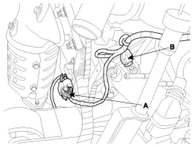 (1) Disconnect the RH oxygen sensor connectors(B).