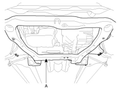 29. Supporting the cross member(A) with a jack, remove the stay with the mounting bolts.