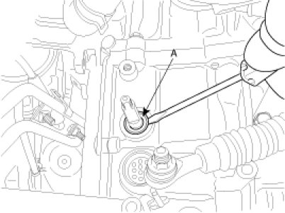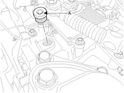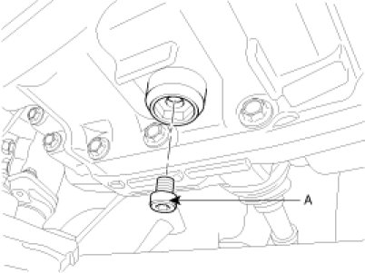 5. Remove the overflow plug(A) and the O-ring by using Torx wrench(T40) when ATF temperature on CAN signal rises up to 50 - 60°C at stabilized idle speed condition.