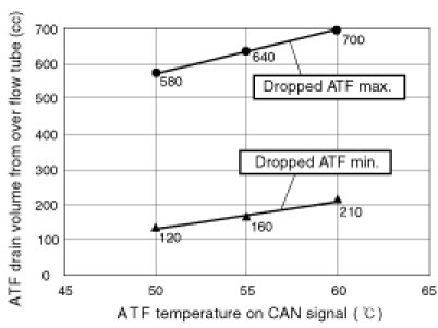 6. Oil level is correct if ATF drain volume is in the range in the figure below.