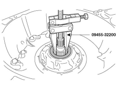 4. Using the special tool (09455-32200), remove the oil seal (A) from the oil pump assembly.