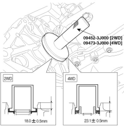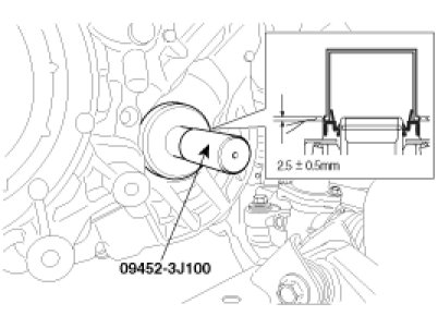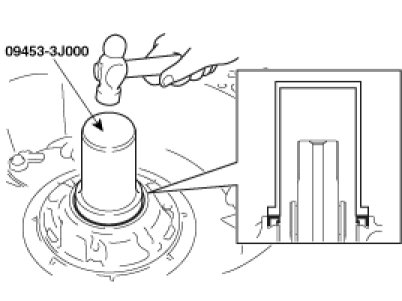 5. Using the specified tool (09452-3J000[2WD] or 09473-3J000[4WD]) and a hammer, install the new oil seal to the transmission housing.