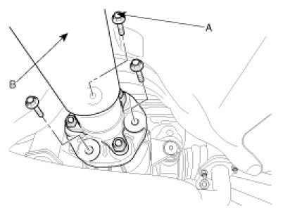 1. Remove the 4WD coupling assembly bolts (A-3ea) mounted to the rear propeller shaft (B).