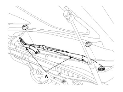 1. Remove the windshield wiper arm and blade (A) after removing a nut.