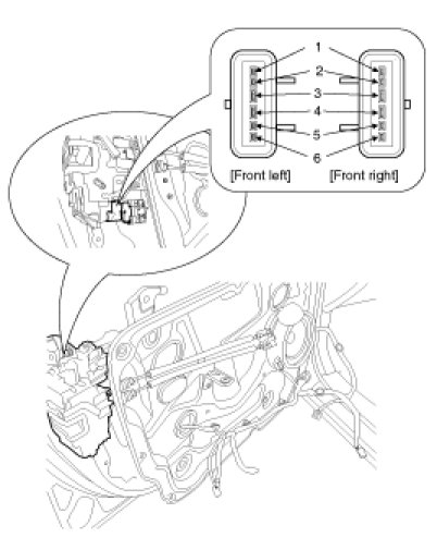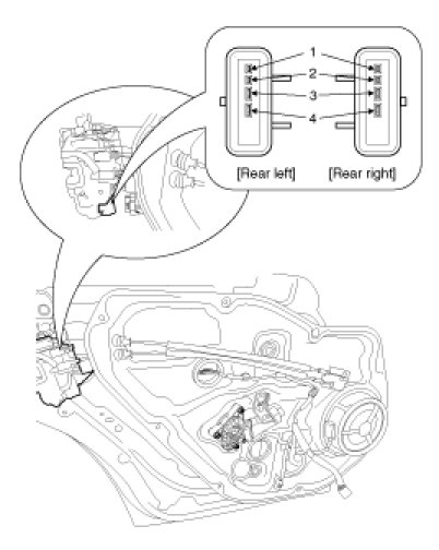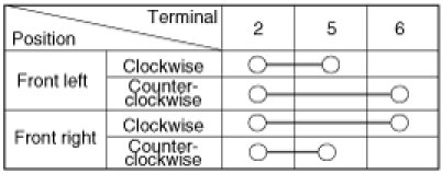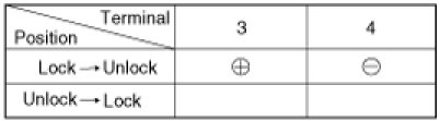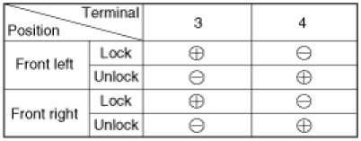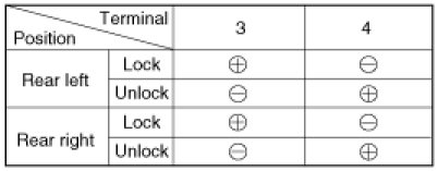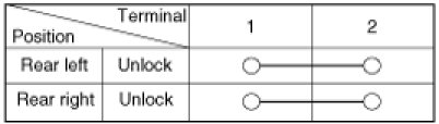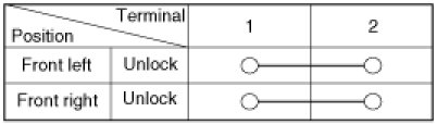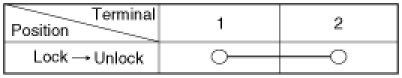 4. Check for continuity between the terminals in each switch position when inserting the key into the door according to the table.