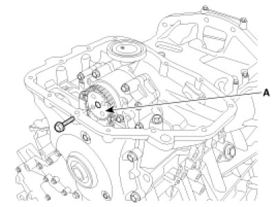 4. Remove the oil pump chain sprocket(A).