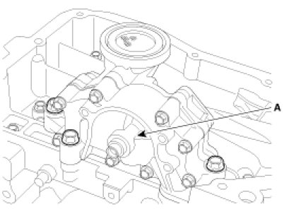 1. Install the oil pump(A).