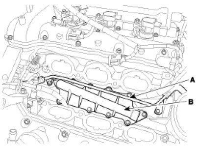 4. Remove the surge tank and the intake manifold(A) with the delivery pipe assembly.
