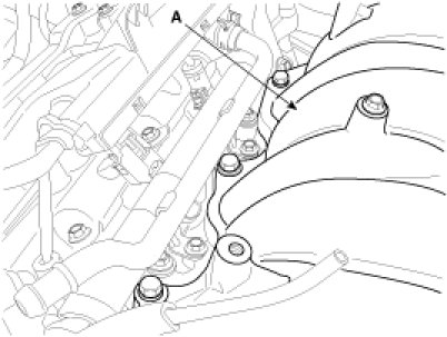 13. Remove the intake manifold(A) and gasket.
