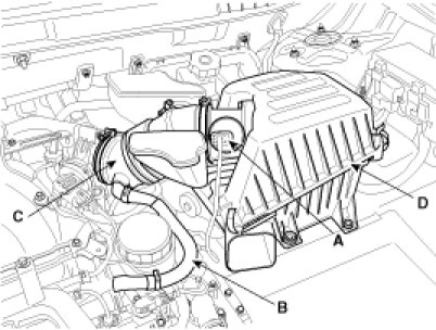 (3) Remove the intake air hose(C) and air cleaner body (D).