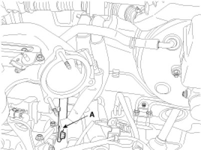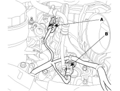 (9) Disconnect the ETC connector (A) and the knock sensor connector (B).