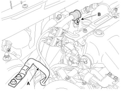 (8) Disconnect the PCSV connector (A), the MAP sensor connector (B) and the PCSV hose.
