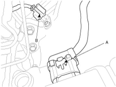 (3) Disconnect the OCV connector (A) and the knock sensor connector (B).