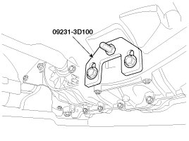 - Install the SST (09231-3C300) to hold the ring gear after removing the starter.