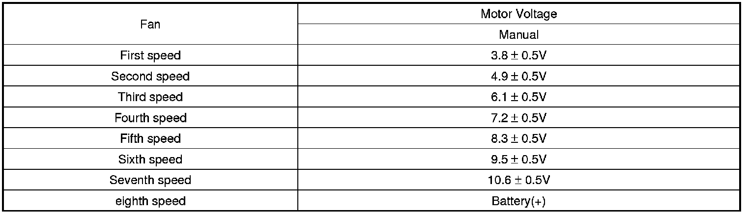 2. Manually operate the control switch and measure the voltage of blower motor between pin 1 and 2.