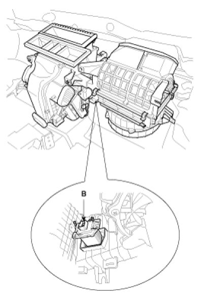 2. Disconnect the power mosfet connector at the connecting part between heater and blower unit.