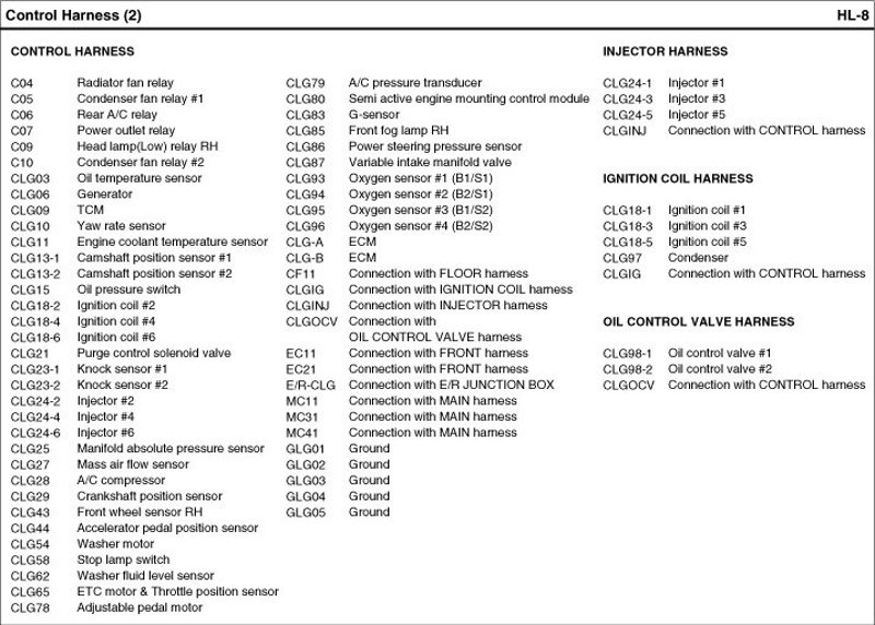 Control Harness Index: