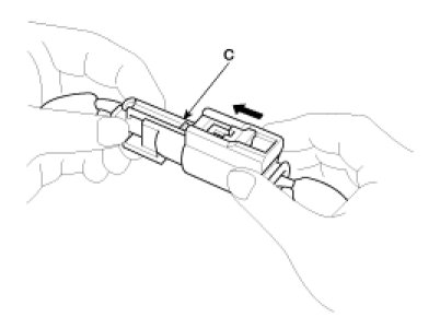 Hold both connector halves and press firmly until the projection (C) of the sleeve-side connector clicks to lock.