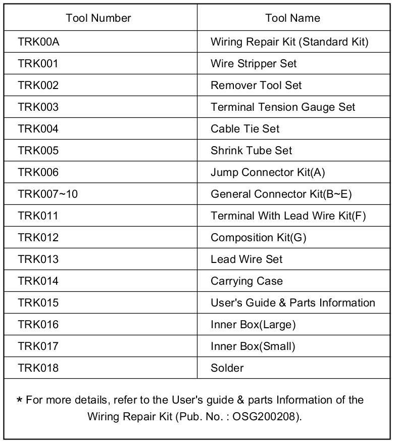 WIRING REPAIRREFERENCE SERVICE TOOLS