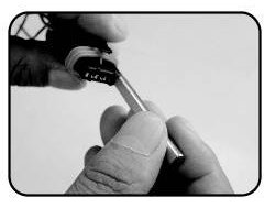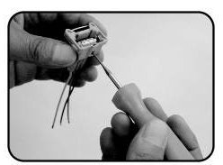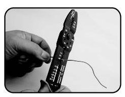 2. Insert each wire into the opposite ends of the inline solder and crimp using wire stripper.