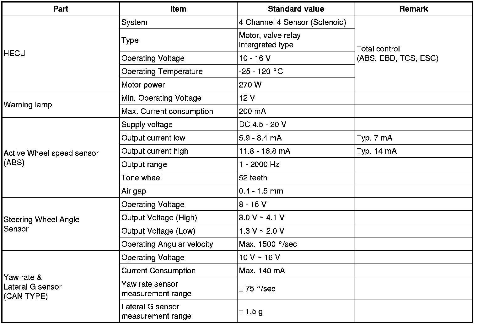 Specification(ESC)