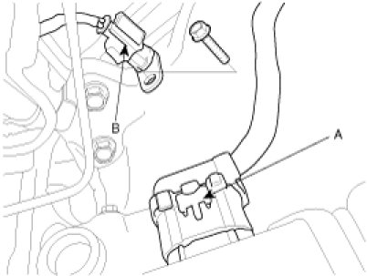 32. Connect the TCU connector (A) and install the CKP sensor (B).