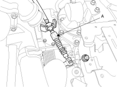 22. Connect the return hose (A) to the tube by tightening the clamp.