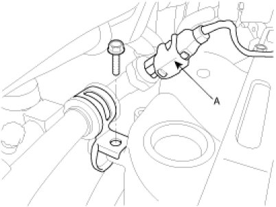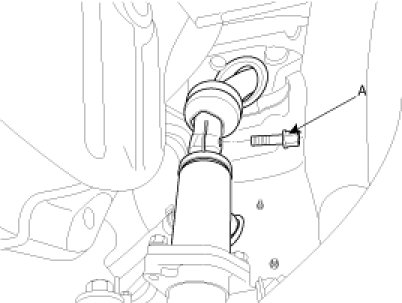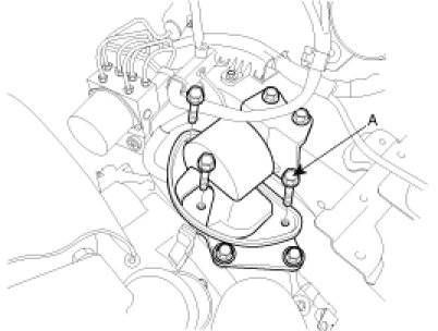 22. Remove the power steering pressure tube (A) from the power steering oil pump by removing the I-type bolt.