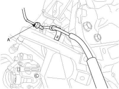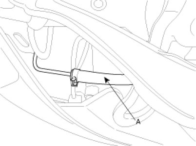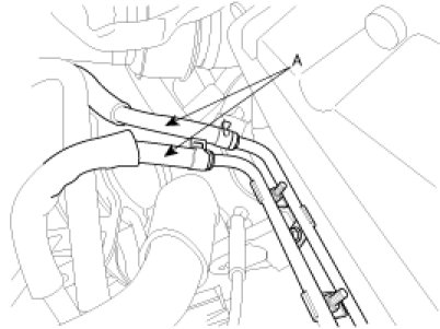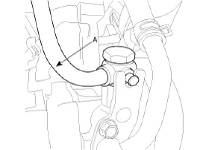 17. Drain the power steering fluid through the return hose (A) by loosening the clamp.