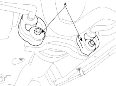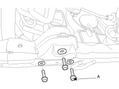 1. After fitting the transaxle assembly into the engine assembly by using a jack, install the five transaxle lower mounting bolts (A).