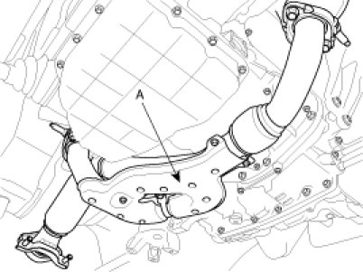 37. Supporting the transaxle with a jack, remove the five transaxle lower mounting bolts (A).