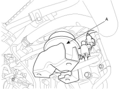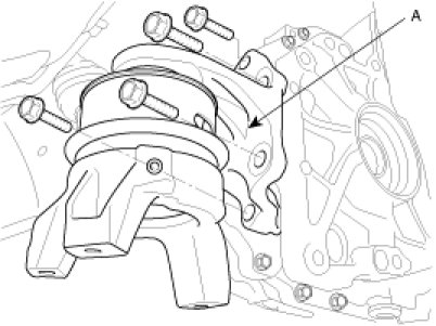 11. After removing the three bolts (A), take the transaxle support bracket off.
