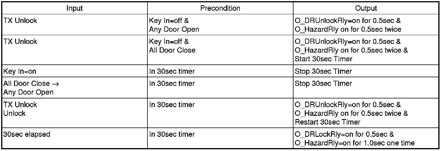 A. From All Door Close1 condition, in case of All Door Lock2 and O_Hazard Rly output on by Transmitter.