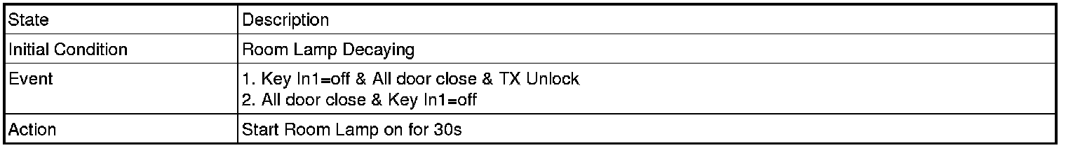 (1) In case of BAT. Connect -> disconnect, if IGN1=on & Any door open ,transit to Room Lamp on(100%) Mode.