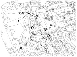 24. Remove the alternator bracket (B).