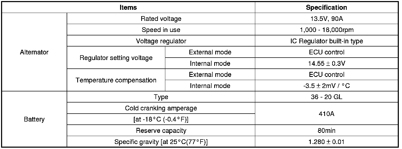 Charging System: Specifications