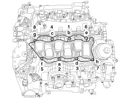 Tighten the intake manifold bolts and nuts, in several passes as below.