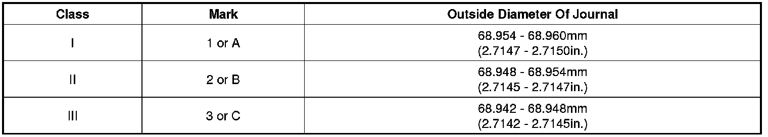 If the proper clearance cannot be obtained by using the appropriate larger or smaller bearings, replace the crankshaft and start over.