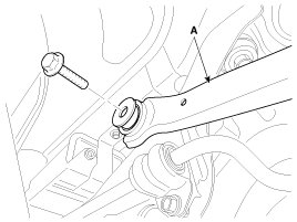4. Loosen the rear upper arm bolts and nut and then remove the rear upper arm (A).