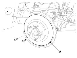 7. Loosen the disc mount screw and then brake disc (A).