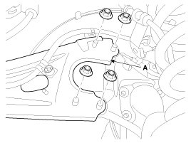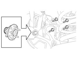 9. Loosen the hub bearing mounting, and then remove the hub bearing (A) from knuckle.