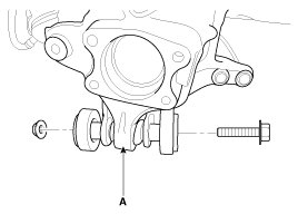 12. Loosen the lower arm mounting bolt and nut and then remove the rear hub assembly (A).