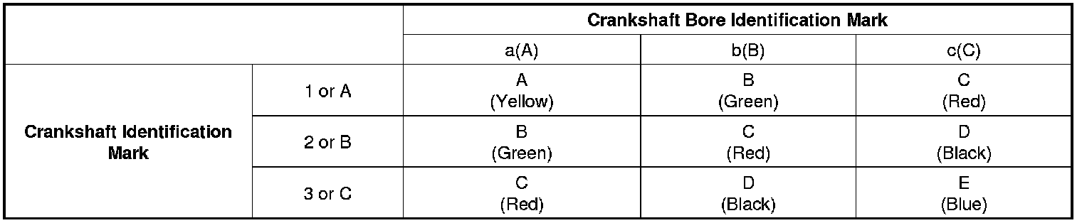 Main Bearing Size Codes