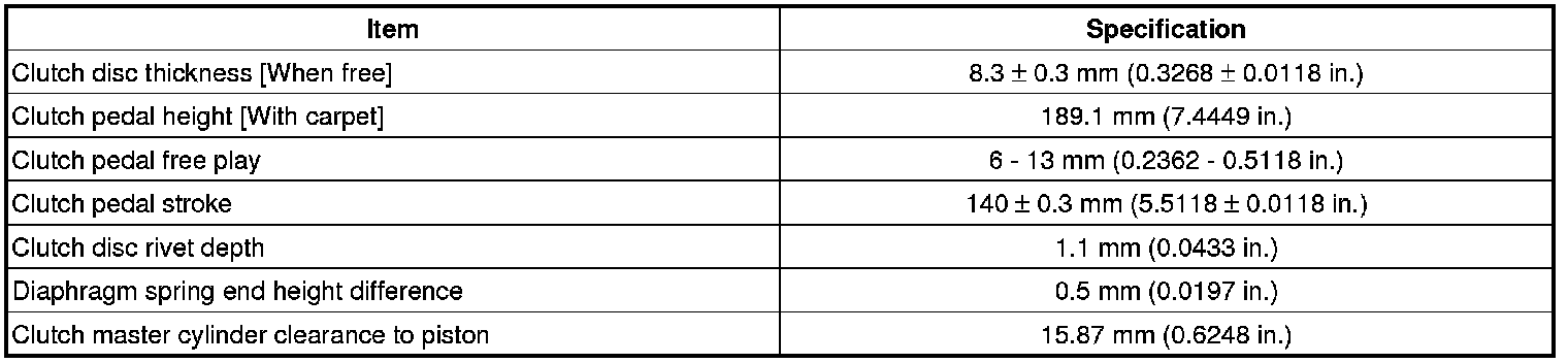 Clutch, M/T: Specifications