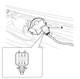 1. Remove the connector (A) from the wiper motor.