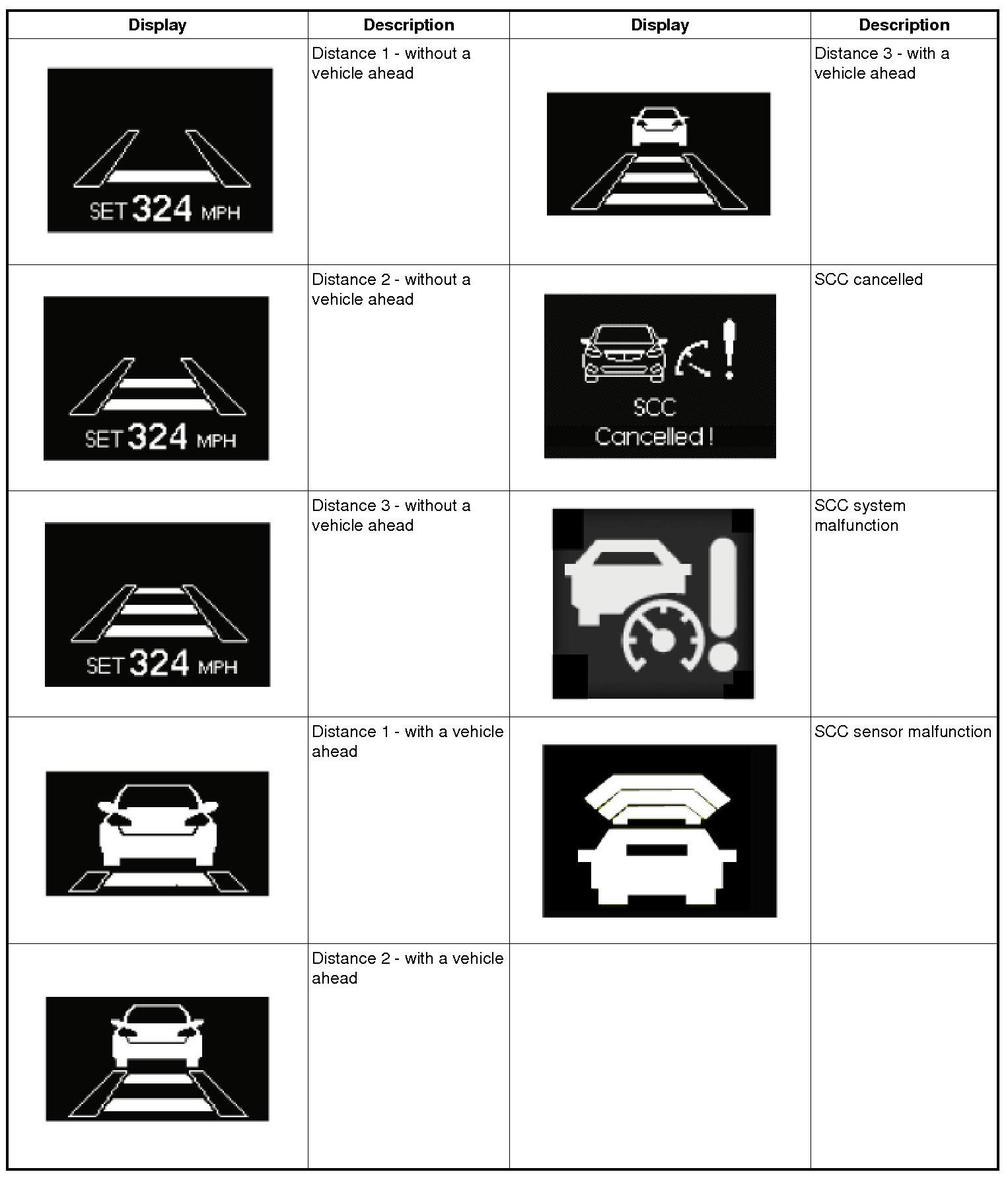 If the vehicle equipped the SCC decelerates because a vehicle ahead decelerates or moves into your lane, the warning will operate.